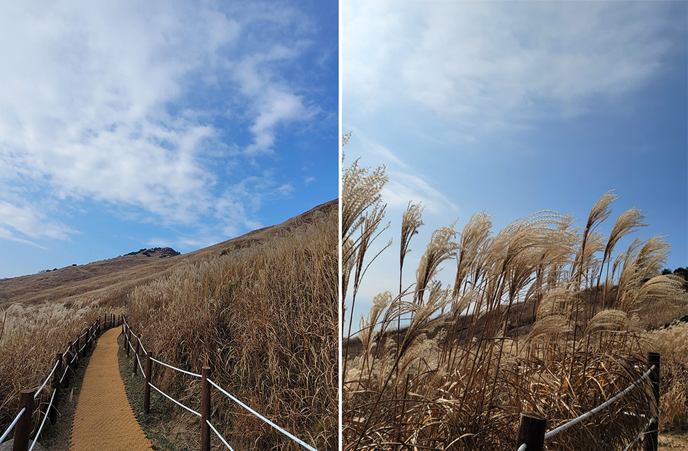 시원한 바람 사이로 흔들리는 억새들이 무척 예뻤습니다.